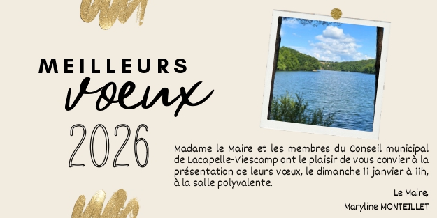 Madame le Maire et les membres du Conseil municipal de Lacapelle-Viescamp ont le plaisir de vous convier à la présentation des vœux de la municipalité.📅 Dimanche 11 janvier🕚 À 11 h📍 Salle polyvalente - Lacapelle-Viescamp