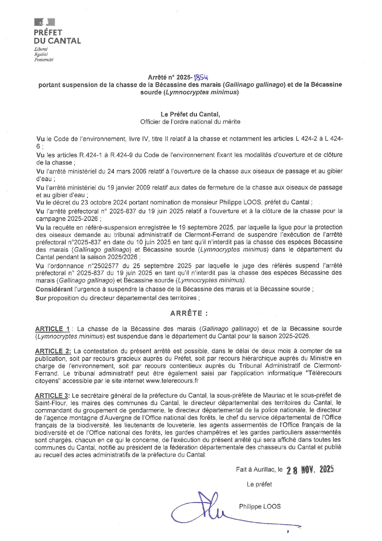 🛑 Arrêté préfectoral — Suspension de la chasse de la bécassine des marais & de la bécassine sourde 🛑